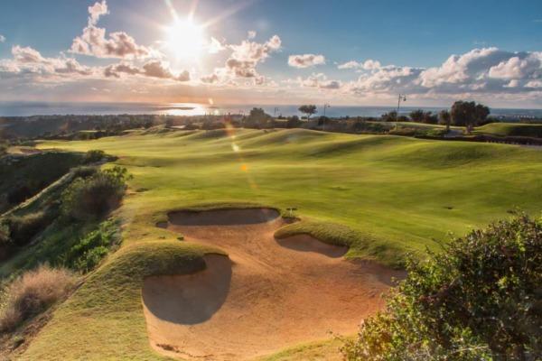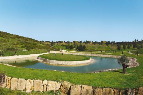 Visually spectacular, the course expands through indigenous olive and carob trees and is built on two plateaux, separated by a dramatic ravine with outstanding views over the Mediterranean. And the staggering 130 metre gorge dividing tees at the 7th hole is an enticing challenge for all lovers of this beautiful game.
